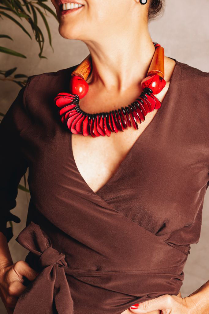 Colar Jarina Vermelha, Discos de Coco e Madeira
