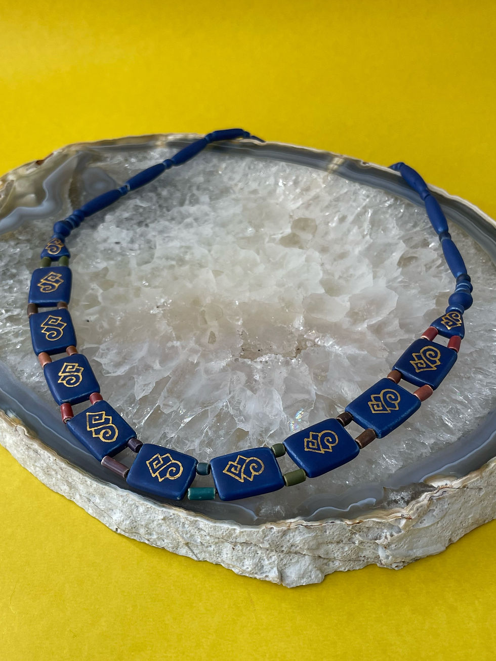 Colar cerâmica vitrificada opaca azul pintado em ouro 3.