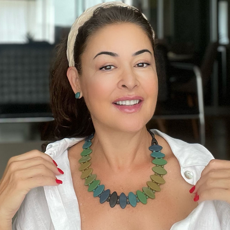 Colar cerâmica fosca pastihas azul e verde.