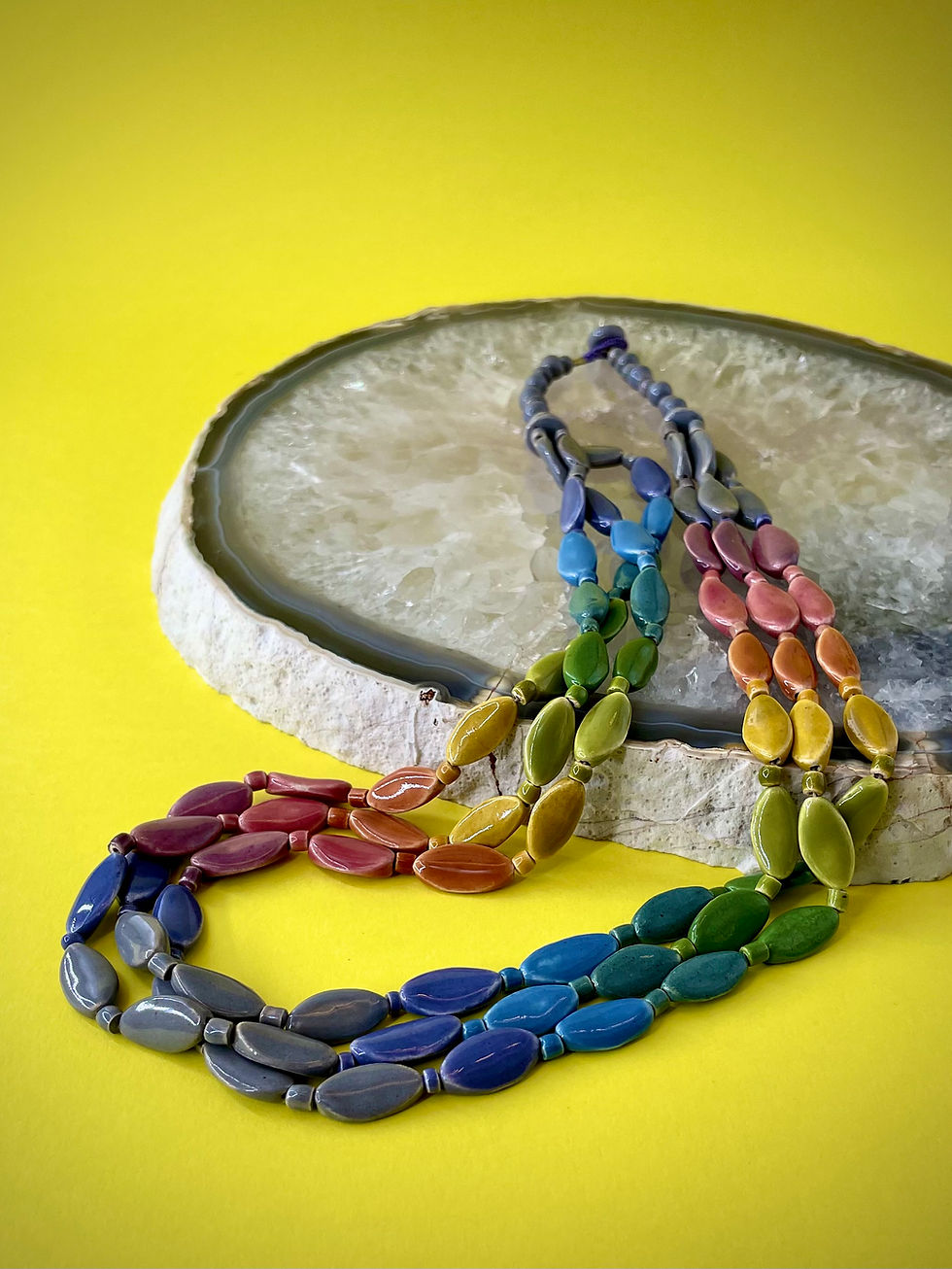 Colar em cerâmica fosca colorida desenhada quatro voltas 1.